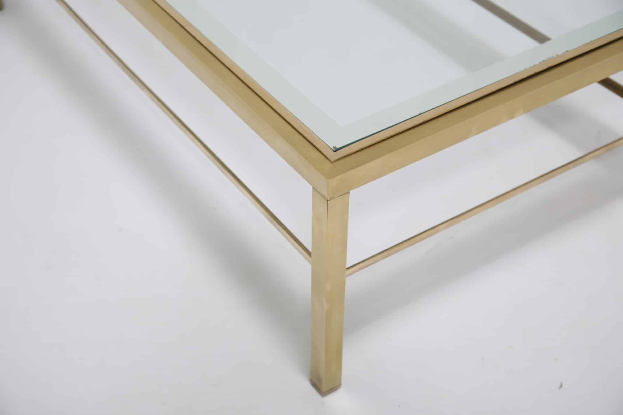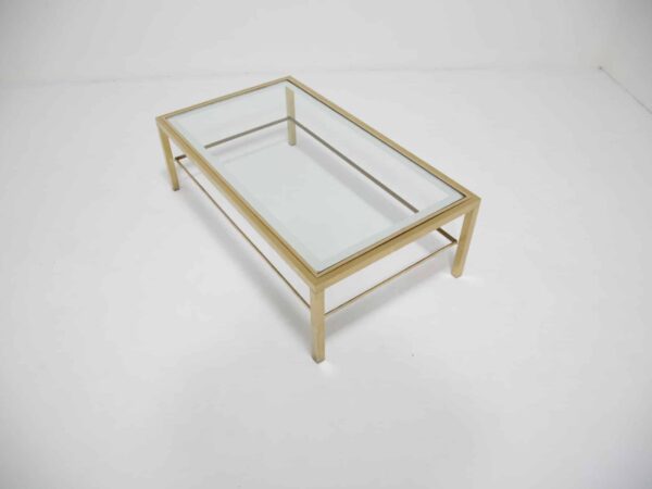 This Brushed Brass Italian Coffee Table is a perfect mix of style and function. Its sleek brass frame adds a touch of vintage charm, making it a standout piece in any space. The warm, golden tones of the brushed brass bring a sense of elegance while keeping the design timeless.