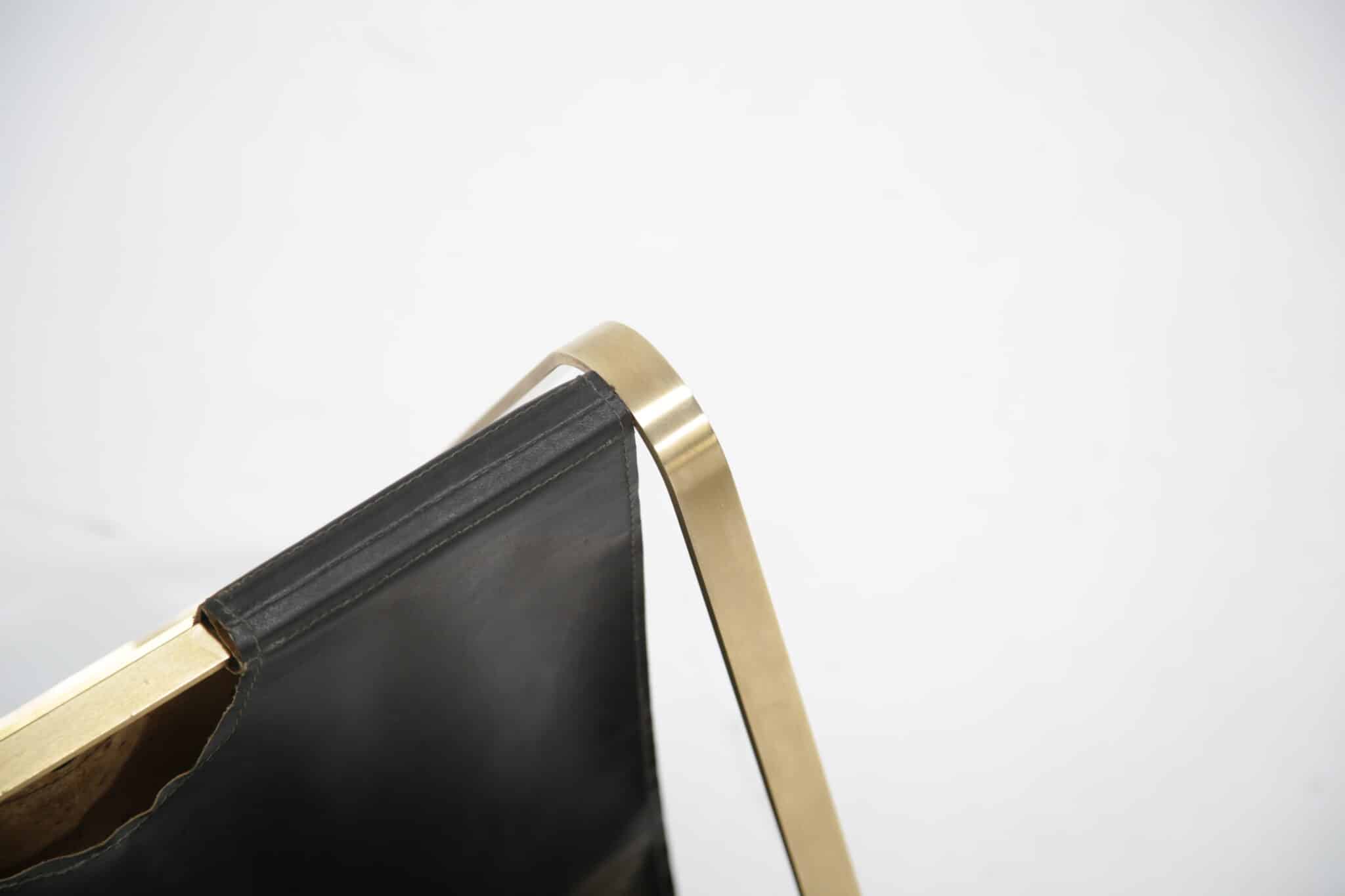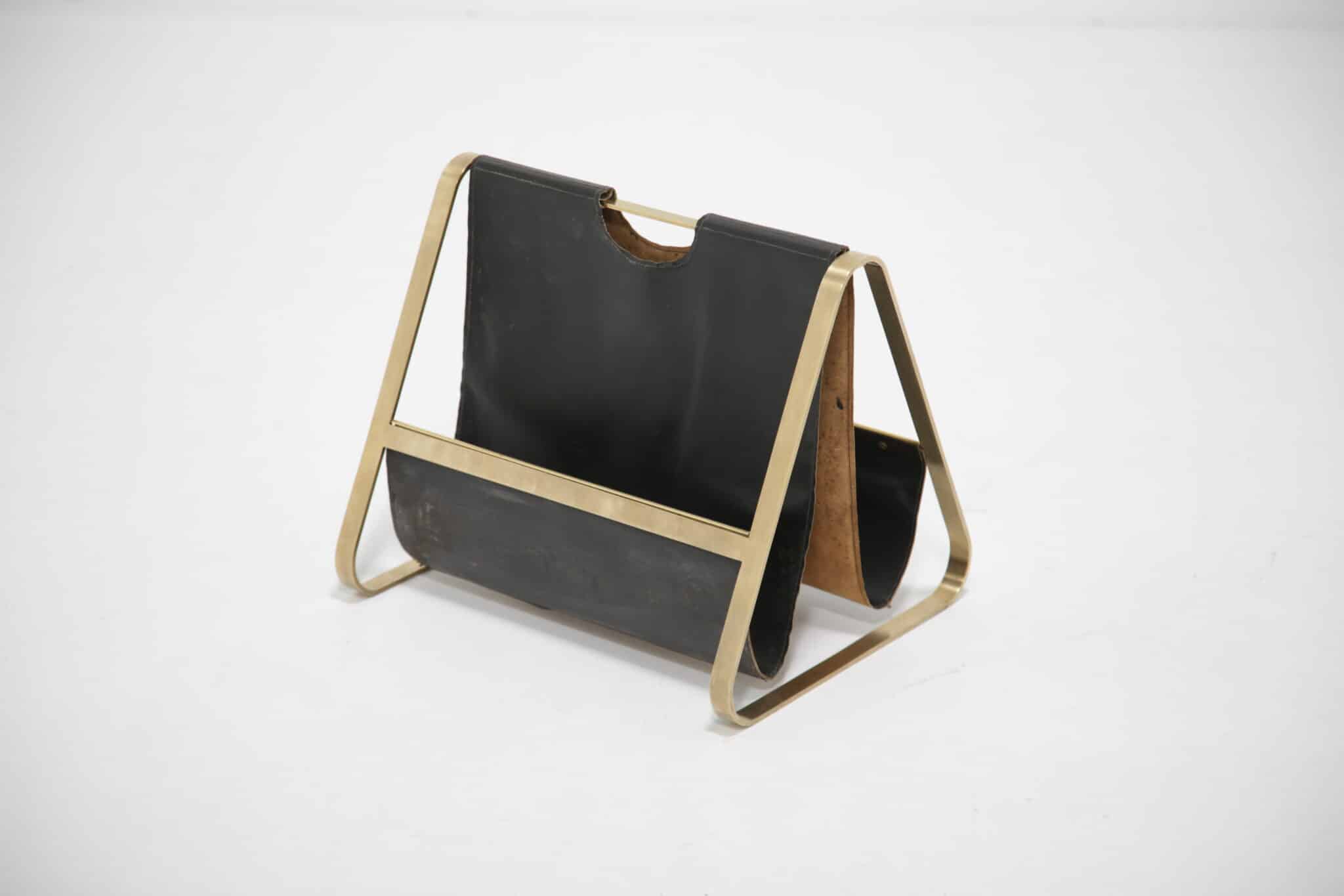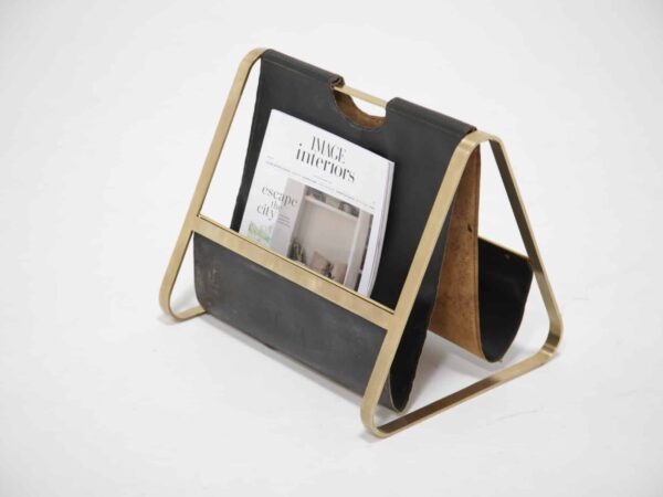 Enrico Franchi Double Sided Brass and Leather Magazine Rack