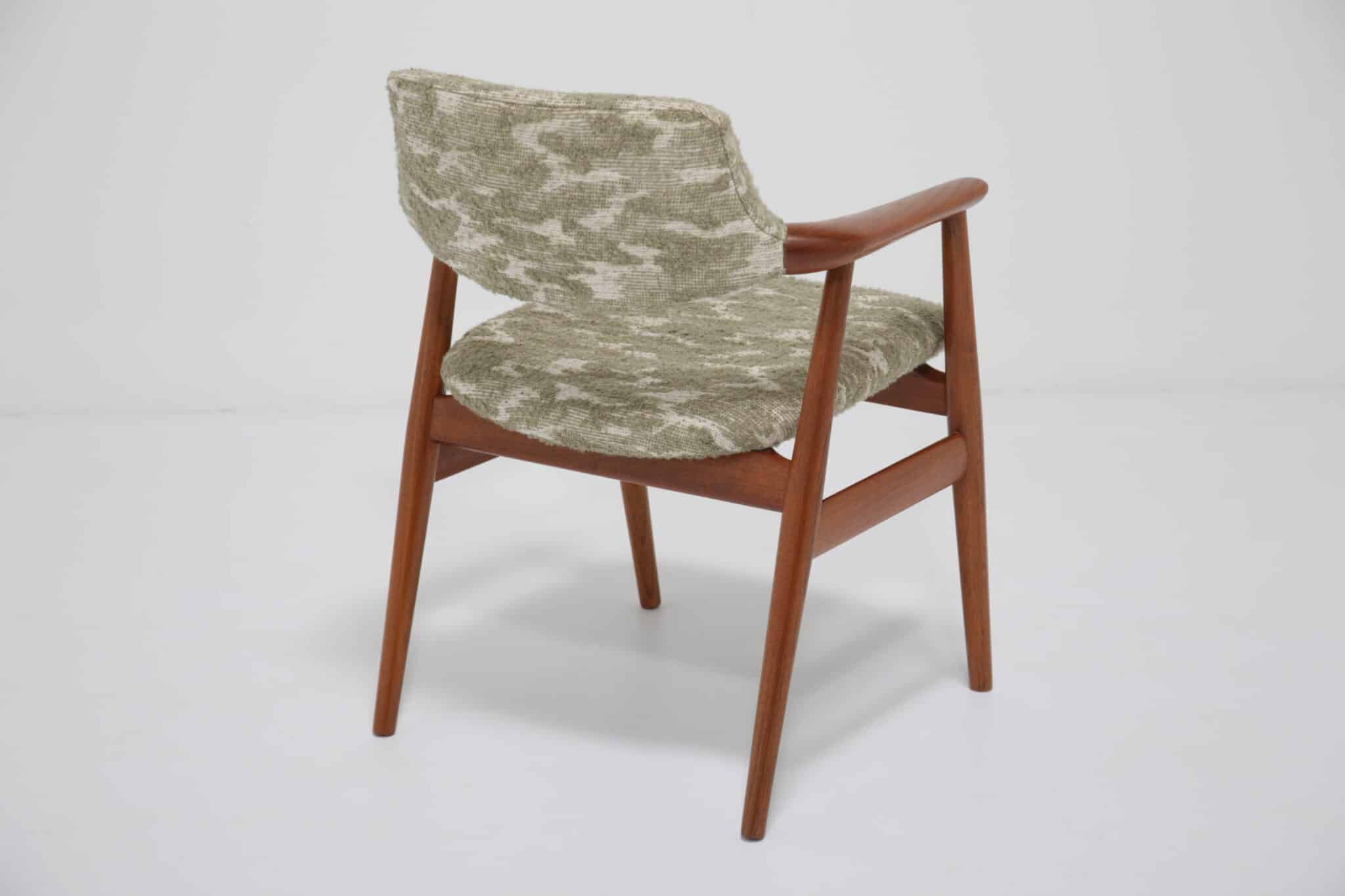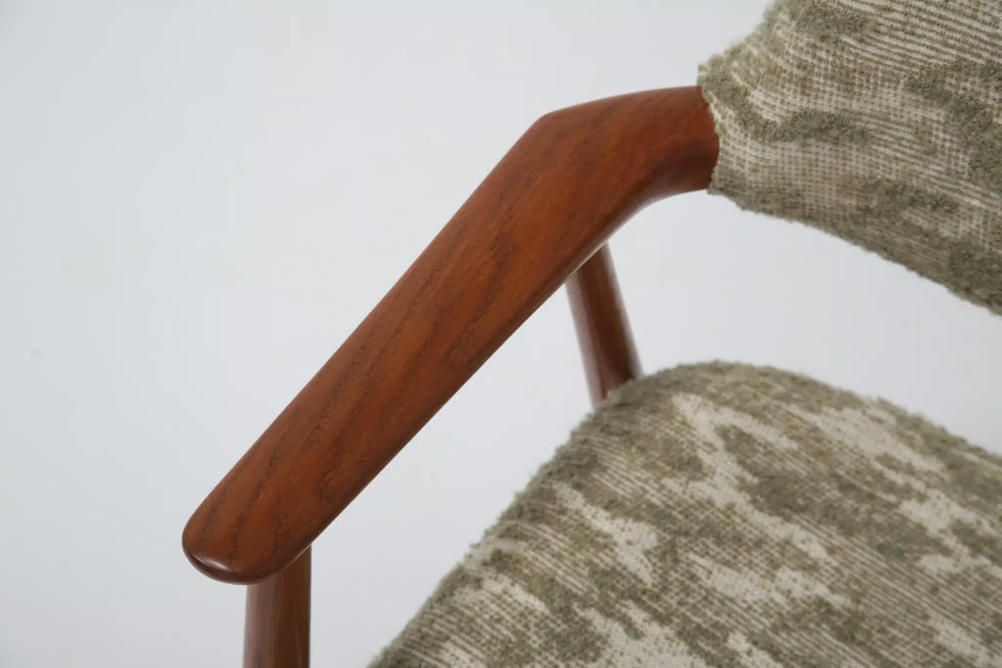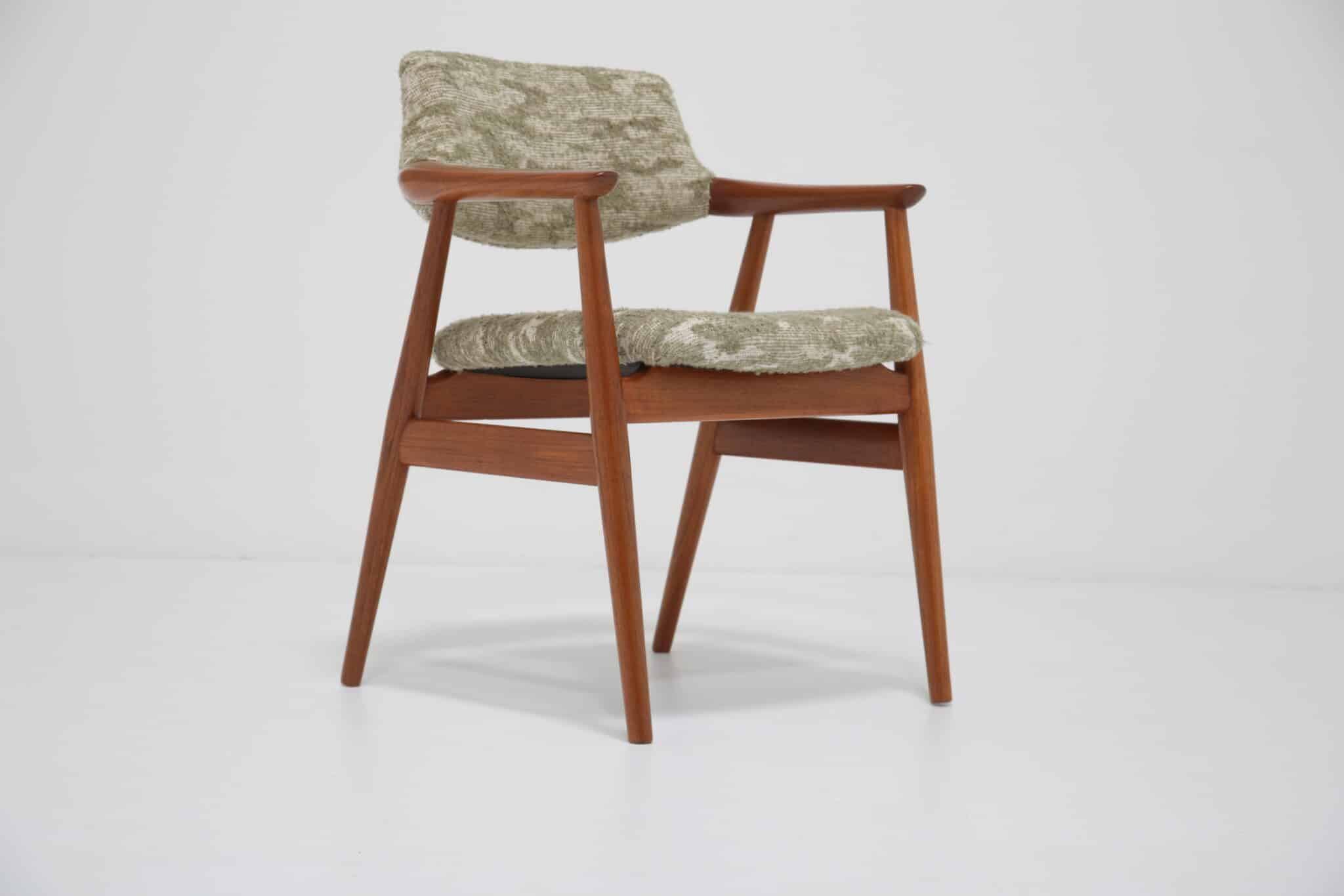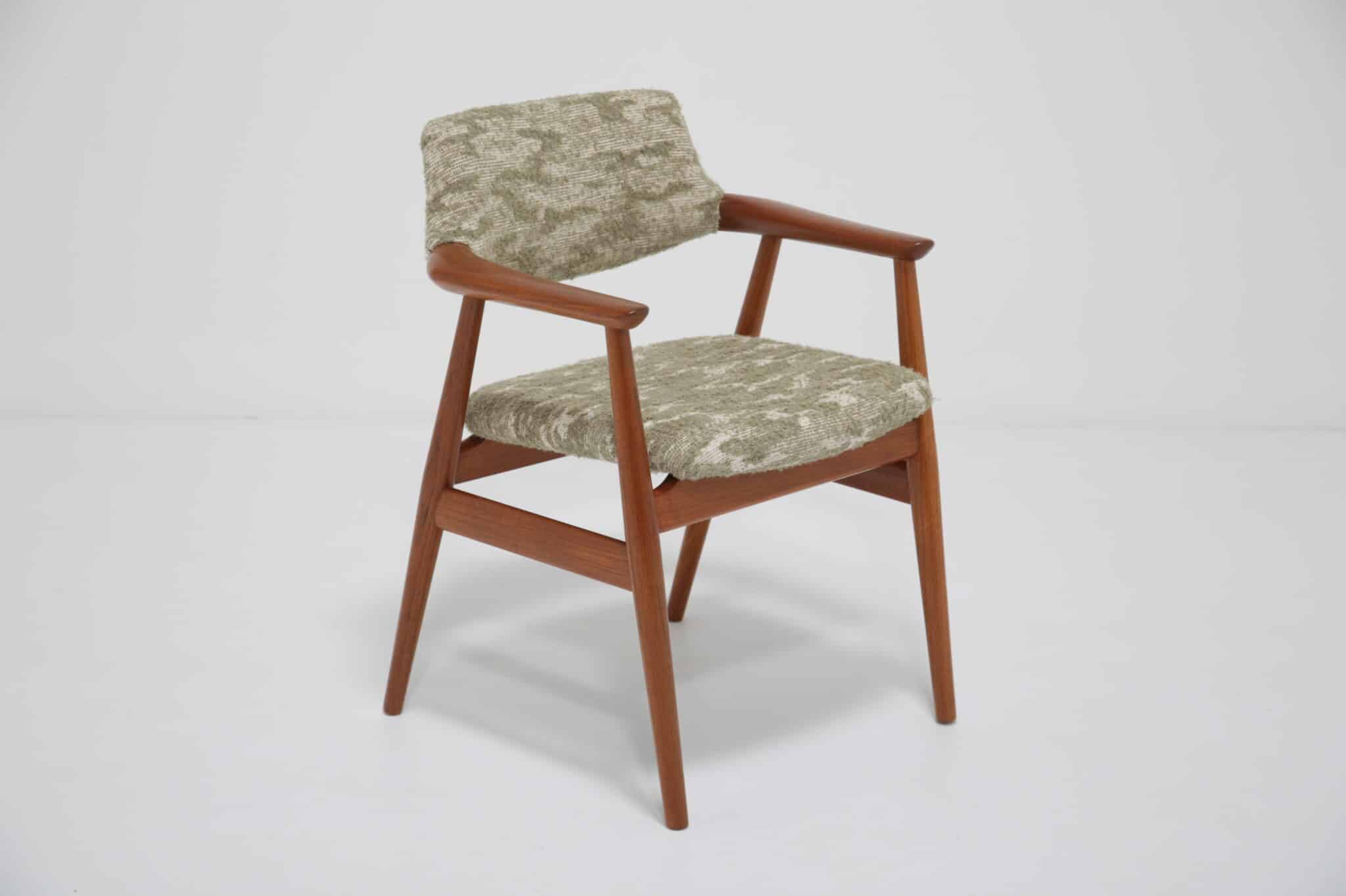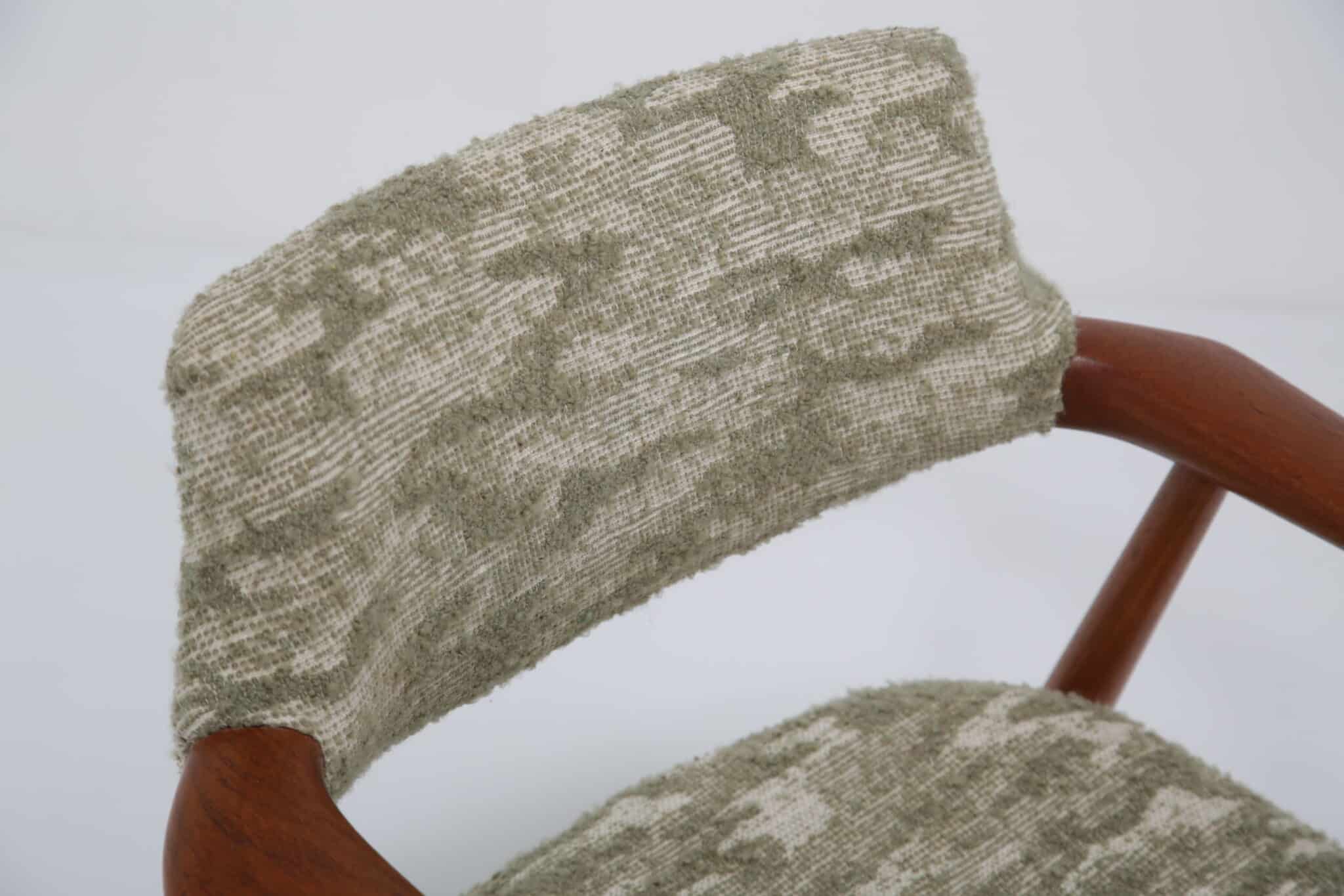 The Erik Kirkegaard Teak Armchair is a 1960s Danish design by Glostrup, fully refurbished with chenille & boucle upholstery. A sturdy, mid-century piece perfect as a desk or occasional chair.