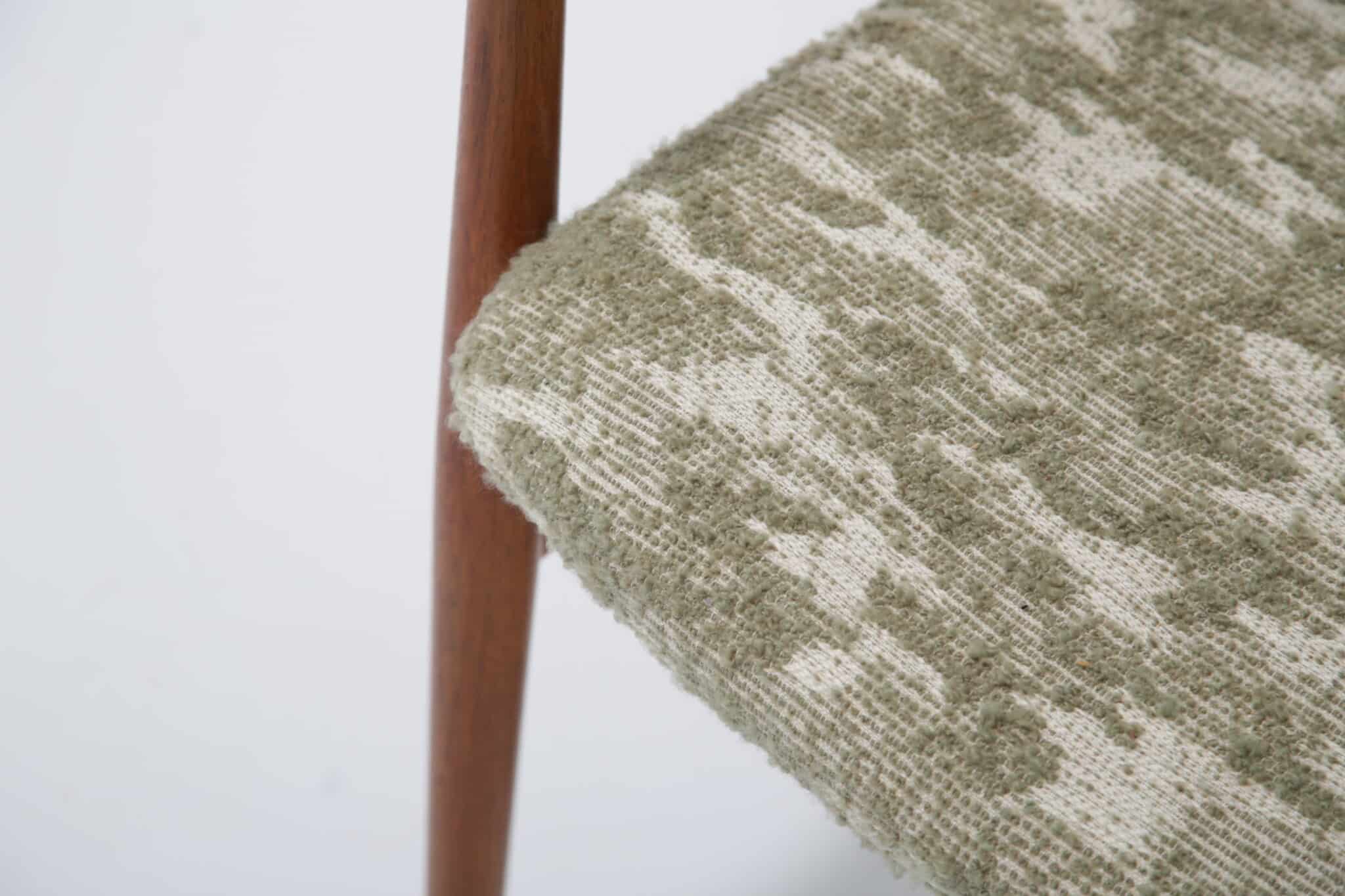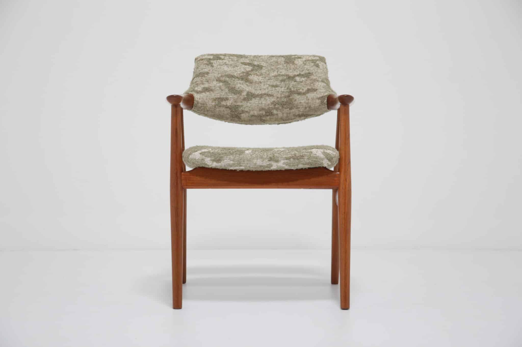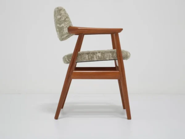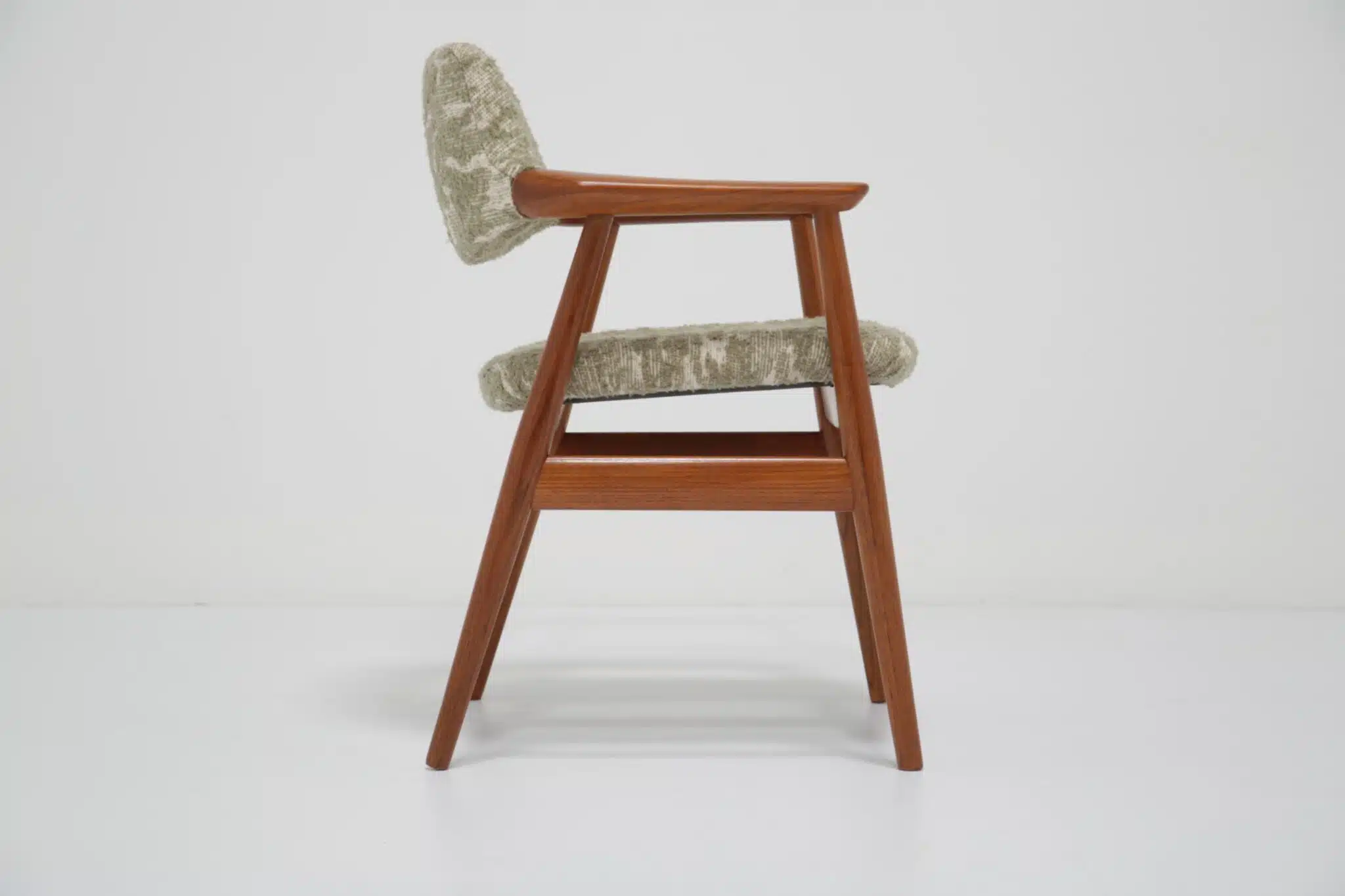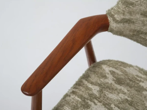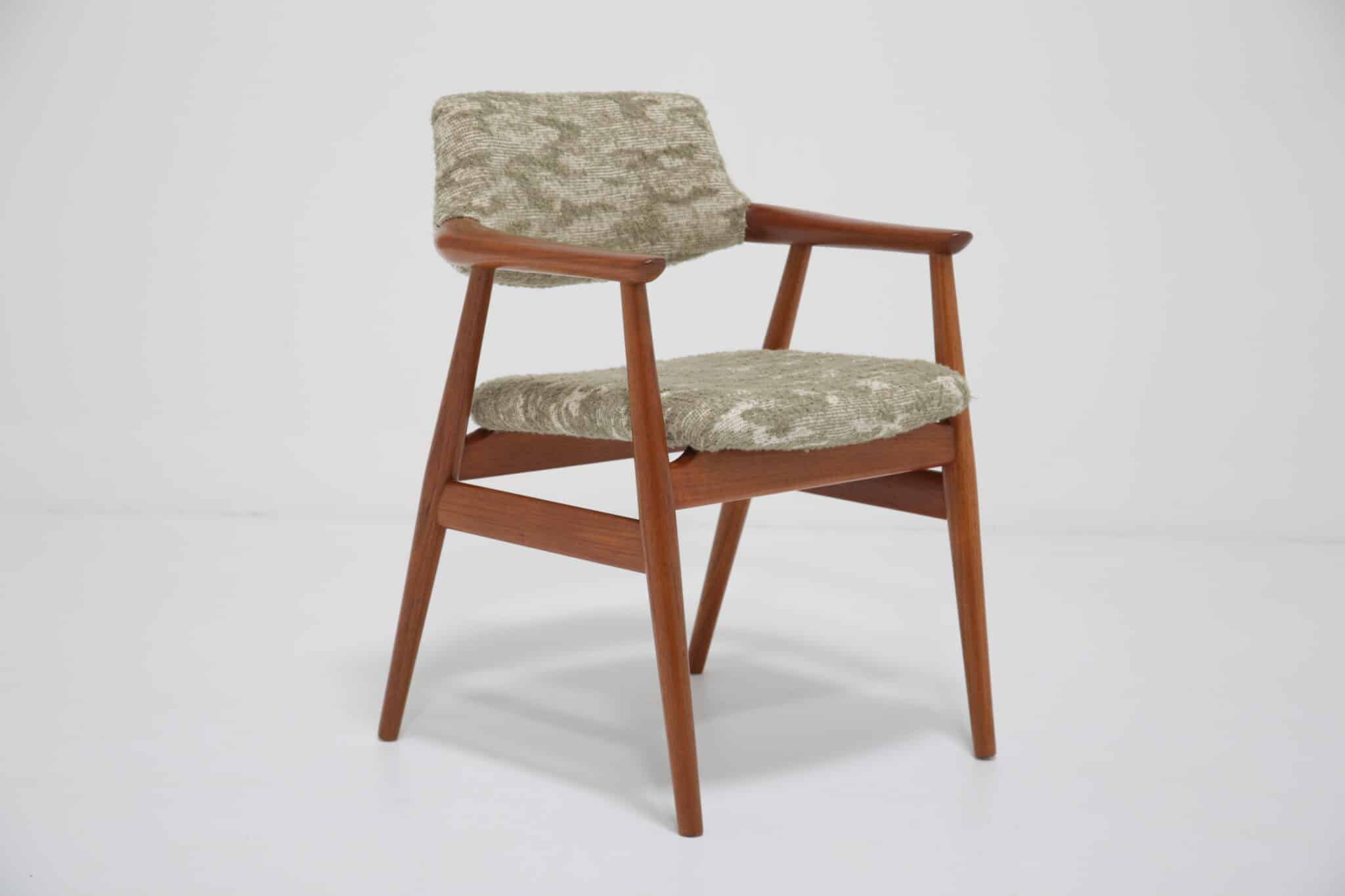 The Erik Kirkegaard Teak Armchair is a 1960s Danish design by Glostrup, fully refurbished with chenille & boucle upholstery. A sturdy, mid-century piece perfect as a desk or occasional chair.