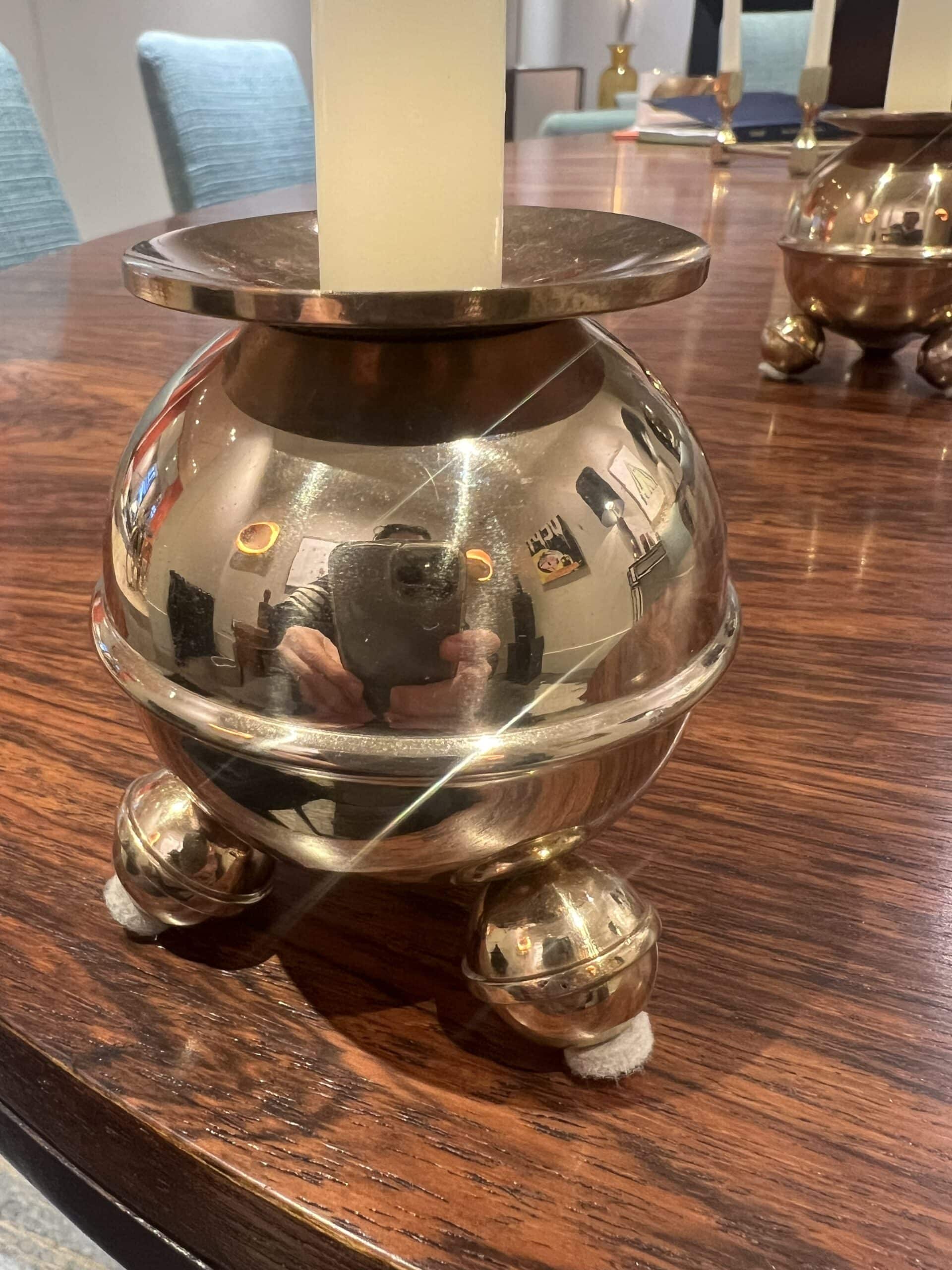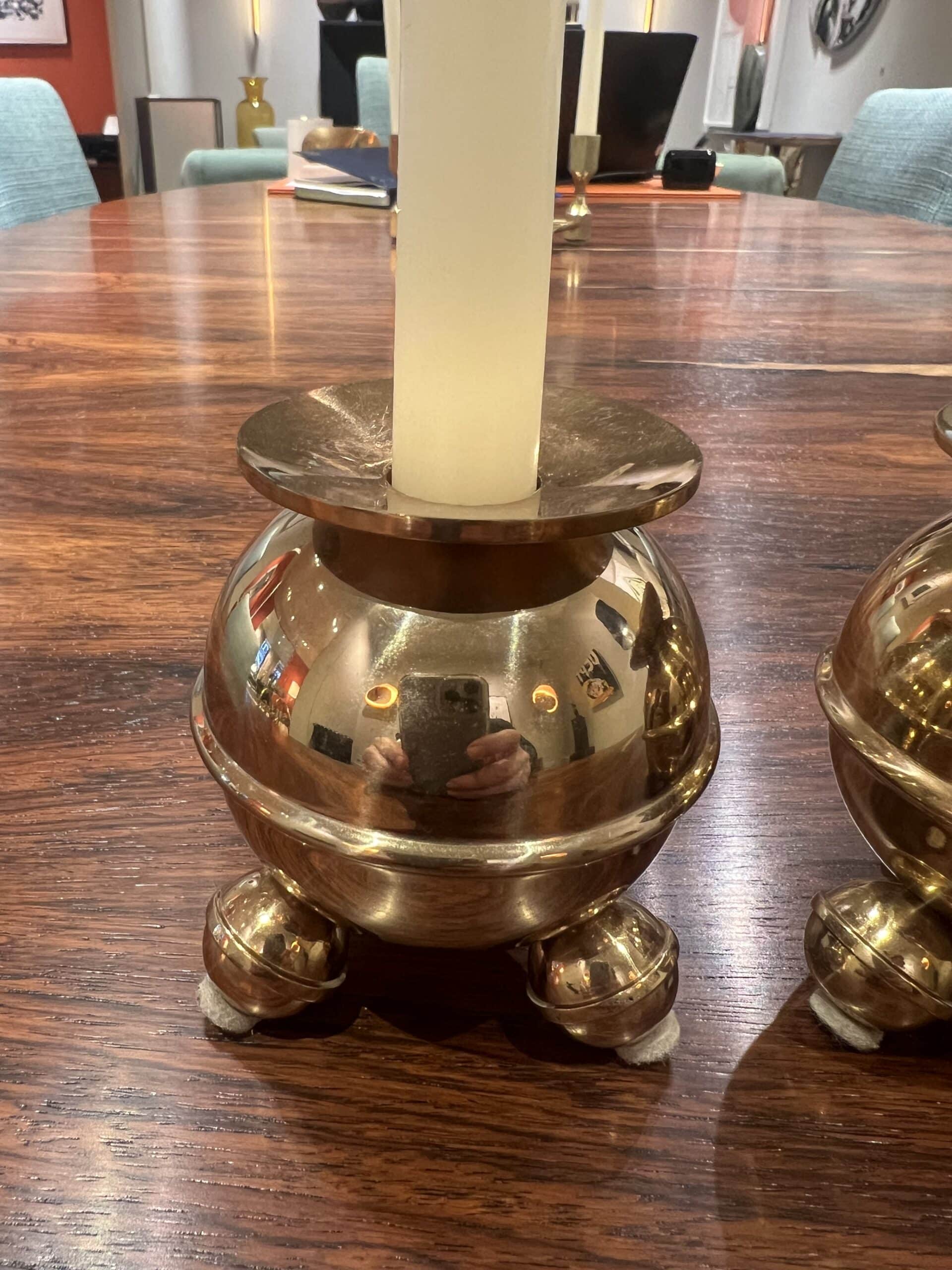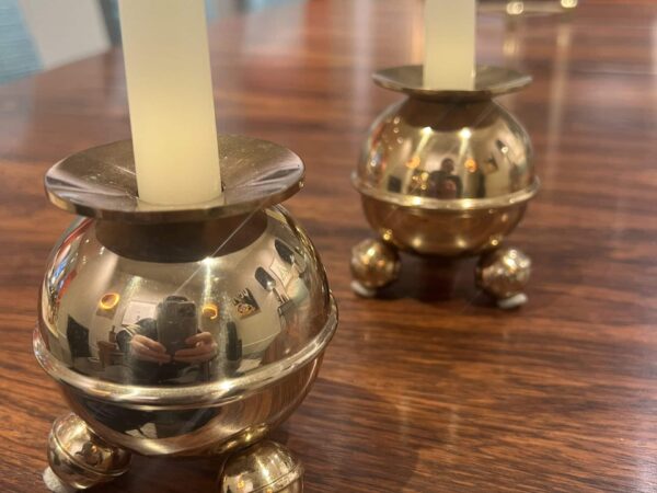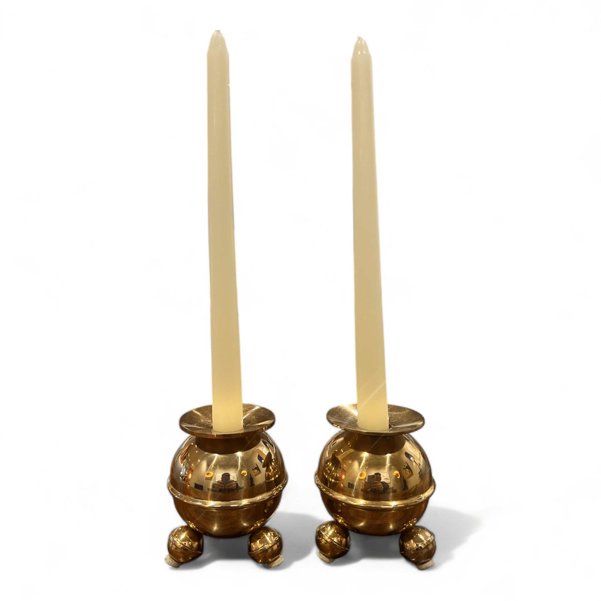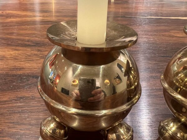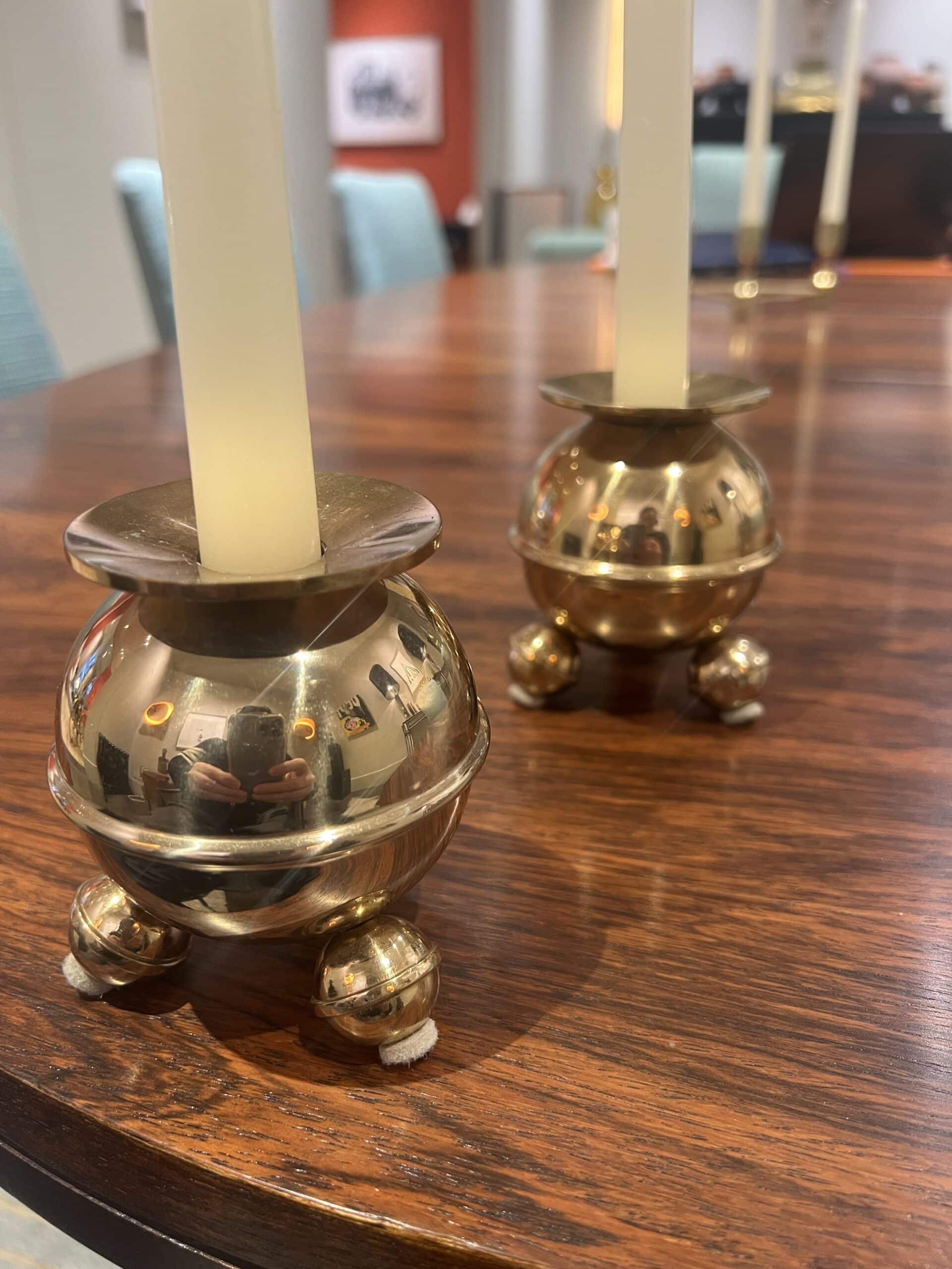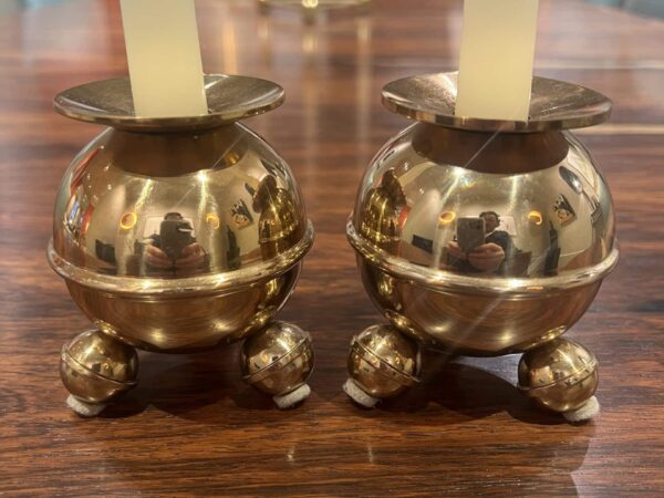 Professionally cleaned, these candlesticks gleam with a radiant brass finish and are in exceptional condition. Their heavy construction adds durability while ensuring they remain sturdy and practical for everyday use.