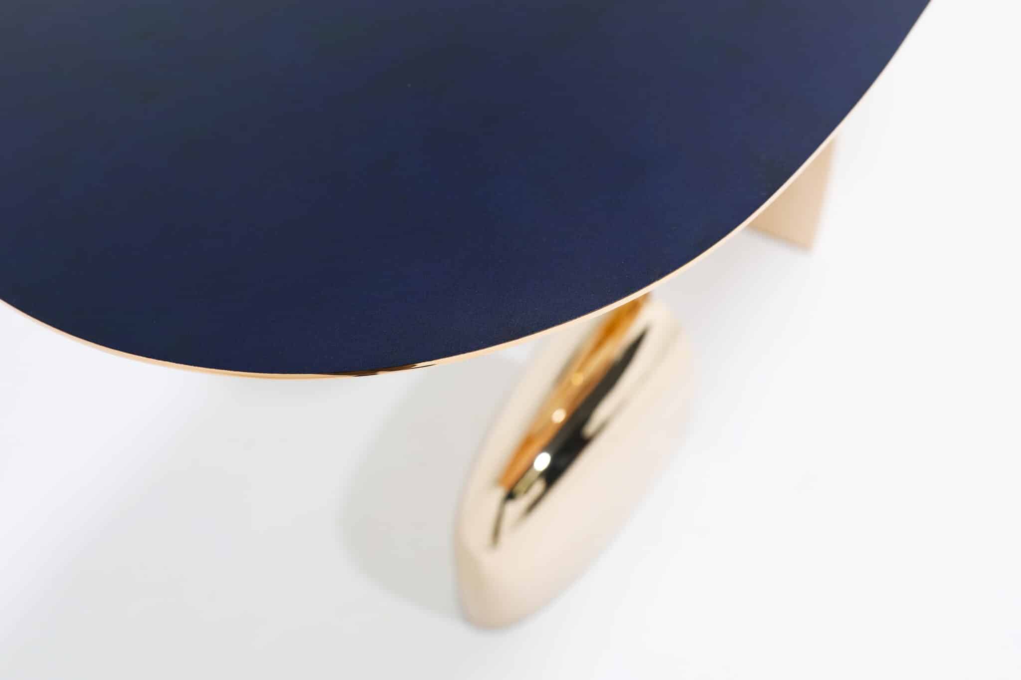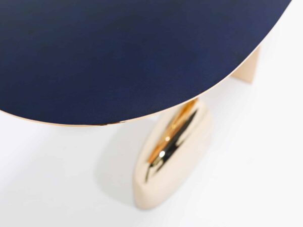 Top top two bronze console table with hand applied blue patina top on hand made mirror polished base, designed by Niamh Barry.